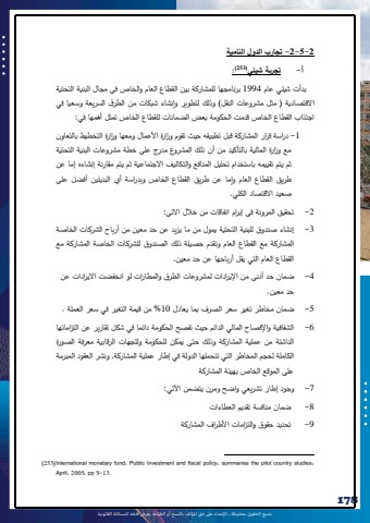 %u062c%u0645%u064a%u0639 %u0627%u0644%u062d%u0642%u0648%u0642 %u0645%u062d%u0641%u0648%u0638%u0629 %u0640 %u0627%u0625%u0644%u0639%u062a%u062f%u0627%u0621 %u0639%u0649%u0644 %u062d%u0642 %u0627%u0645%u0644%u0624%u0644%u0641 %u0628%u0627%u0644%u0646%u0633%u062e %u0623%u0648 %u0627%u0644%u0637%u0628%u0627%u0639%u0629 %u064a%u0639%u0631%u0636 %u0641%u0627%u0639%u0644%u0647 %u0644%u0644%u0645%u0633%u0627%u0626%u0644%u0629 %u0627%u0644%u0642%u0627%u0646%u0648%u0646%u064a%u0629178 1782-5-2 -%u062a%u062c%u0627%u0631%u0628 %u0627%u0644%u062f%u0648%u0644 %u0627%u0644%u0646%u0627%u0645%u064a%u0629 : ) 253 )%u0623- %u062a%u062c%u0631%u0628%u0629 %u0634%u064a%u0644%u064a %u0628%u062f%u0623%u062a %u0634%u064a%u0644%u064a %u0639%u0627%u0645 1994 %u0628%u0631%u0646%u0627%u0645%u062c%u0647%u0627 %u0644%u0644%u0645%u0634%u0627%u0631%u0643%u0629 %u0628%u064a%u0646 %u0627%u0644%u0642%u0637%u0627%u0639 %u0627%u0644%u0639%u0627%u0645 %u0648%u0627%u0644%u062e%u0627%u0635 %u0641%u0649 %u0645%u062c%u0627%u0644 %u0627%u0644%u0628%u0646%u064a%u0629 %u0627%u0644%u062a%u062d%u062a%u064a%u0629 %u0627%u0627%u0644%u0641%u062a%u0635%u0627%u062f%u064a%u0629 ) %u0645%u062b%u0644 %u0645%u0634%u0631%u0648%u0639%u0627%u062a %u0627%u0644%u0646%u0642%u0644( %u0648%u0630%u0644%u0643 %u0644%u062a%u0637%u0648%u064a%u0631 %u0648%u0625%u0646%u0634%u0627%u0621 %u0634%u0628%u0643%u0627%u062a %u0645%u0646 %u0627%u0644%u0637%u0631%u0642 %u0627%u0644%u0633%u0631%u064a%u0639%u0629 %u0648%u0633%u0639%u064a%u0627 %u0641%u064a%u0627%u062c%u062a%u0630%u0627%u0628 %u0627%u0644%u0642%u0637%u0627%u0639 %u0627%u0644%u062e%u0627%u0635 %u0642%u062f%u0645%u062a %u0627%u0644%u062d%u0643%u0648%u0645%u0629 %u0628%u0639%u0636 %u0627%u0644%u0636%u0645%u0627%u0646%u0627%u062a %u0644%u0644%u0642%u0637%u0627%u0639 %u0627%u0644%u062e%u0627%u0635 %u062a%u0645%u062b%u0644 %u0623%u0647%u0645%u0647%u0627 %u0641%u064a:1 -%u062f%u0631%u0627%u0633%u0629 %u0642%u0631%u0627%u0631 %u0627%u0644%u0645%u0634%u0627%u0631%u0643%u0629 %u0642%u0628%u0644 %u062a%u0637%u0628%u064a%u0642%u0647 %u062d%u064a%u062b %u062a%u0642%u0648%u0645 %u0648 %u0627%u0632%u0631%u0629 %u0627%u0623%u0644%u0639%u0645%u0627%u0644 %u0648%u0645%u0639%u0647%u0627 %u0648 %u0627%u0632%u0631%u0629 %u0627%u0644%u062a%u062e%u0637%u064a%u0637 %u0628%u0627%u0644%u062a%u0639%u0627%u0648%u0646%u0645%u0639 %u0648%u0632%u0627%u0631%u0629 %u0627%u0644%u0645%u0627%u0644%u064a%u0629 %u0628%u0627%u0644%u062a%u0623%u0643%u064a%u062f %u0645%u0646 %u0623%u0646 %u0630%u0644%u0643 %u0627%u0644%u0645%u0634%u0631%u0648%u0639 %u0645%u062f%u0631%u062c %u0639%u0644%u0649 %u062e%u0637%u0629 %u0645%u0634%u0631%u0648%u0639%u0627%u062a %u0627%u0644%u0628%u0646%u064a%u0629 %u0627%u0644%u062a%u062d%u062a%u064a%u0629 %u062b%u0645 %u064a%u062a%u0645 %u062a%u0642%u064a%u064a%u0645%u0647 %u0628%u0627%u0633%u062a%u062e%u062f%u0627%u0645 %u062a%u062d%u0644%u064a%u0644 %u0627%u0644%u0645%u0646%u0627%u0641%u0639 %u0648%u0627%u0644%u062a%u0643%u0627%u0644%u064a%u0641 %u0627%u0627%u0644%u062c%u062a%u0645%u0627%u0639%u064a%u0629 %u062b%u0645 %u064a%u062a%u0645 %u0645%u0642%u0627%u0631%u0646%u0629 %u0625%u0646%u0634%u0627%u0621%u0647 %u0625%u0645%u0627 %u0639%u0646 %u0637%u0631%u064a%u0642 %u0627%u0644%u0642%u0637%u0627%u0639 %u0627%u0644%u0639%u0627%u0645 %u0648%u0625%u0645%u0627 %u0639%u0646 %u0637%u0631%u064a%u0642 %u0627%u0644%u0642%u0637%u0627%u0639 %u0627%u0644%u062e%u0627%u0635 %u0648%u0628%u062f%u0631%u0627%u0633%u0629 %u0623%u064a %u0627%u0644%u0628%u062f%u064a%u0644%u064a%u0646 %u0623%u0641%u0636%u0644 %u0639%u0644%u0649 %u0635%u0639%u064a%u062f %u0627%u0627%u0644%u0642%u062a%u0635%u0627%u062f %u0627%u0644%u0643%u0644%u064a.2 -%u062a%u062d%u0642%u064a%u0642 %u0627%u0644%u0645%u0631%u0648%u0646%u0629 %u0641%u0649 %u0625%u0628%u0631%u0627%u0645 %u0627%u062a%u0641%u0627%u0642%u0627%u062a %u0645%u0646 %u062e%u0627%u0644%u0644 %u0627%u0627%u0644%u062a%u0649: 3 -%u0625%u0646%u0634%u0627%u0621 %u0635%u0646%u062f%u0648%u0642 %u0644%u0644%u0628%u0646%u064a%u0629 %u0627%u0644%u062a%u062d%u062a%u064a%u0629 %u064a%u0645%u0648%u0644 %u0645%u0646 %u0645%u0627 %u064a%u0632%u064a%u062f %u0639%u0646 %u062d%u062f %u0645%u0639%u064a%u0646 %u0645%u0646 %u0623%u0631%u0628%u0627%u062d %u0627%u0644%u0634%u0631%u0643%u0627%u062a %u0627%u0644%u062e%u0627%u0635%u0629%u0627%u0644%u0645%u0634%u0627%u0631%u0643%u0629 %u0645%u0639 %u0627%u0644%u0642%u0637%u0627%u0639 %u0627%u0644%u0639%u0627%u0645 %u0648%u062a%u0642%u062f%u0645 %u062d%u0635%u064a%u0644%u0629 %u0630%u0644%u0643 %u0627%u0644%u0635%u0646%u062f%u0648%u0642 %u0644%u0644%u0634%u0631%u0643%u0627%u062a %u0627%u0644%u062e%u0627%u0635%u0629 %u0627%u0644%u0645%u0634%u0627%u0631%u0643%u0629 %u0645%u0639%u0627%u0644%u0642%u0637%u0627%u0639 %u0627%u0644%u0639%u0627%u0645 %u0627%u0644%u062a%u064a %u064a%u0642%u0644 %u0623%u0631%u0628%u0627%u062d%u0647%u0627 %u0639%u0646 %u062d%u062f %u0645%u0639%u064a%u0646. 4 -%u0636%u0645%u0627%u0646 %u062d%u062f %u0623%u062f%u0646%u0649 %u0645%u0646 %u0627%u0625%u0644%u064a%u0631%u0627%u062f%u0627%u062a %u0644%u0645%u0634%u0631%u0648%u0639%u0627%u062a %u0627%u0644%u0637%u0631%u0642 %u0648%u0627%u0644%u0645%u0637%u0627%u0631%u0627%u062a %u0644%u0648 %u0627%u0646%u062e%u0641%u0636%u062a %u0627%u0627%u0644%u064a%u0631%u0627%u062f%u0627%u062a %u0639%u0646 %u062d%u062f %u0645%u0639%u064a%u0646. 5 -%u0636%u0645%u0627%u0646 %u0645%u062e%u0627%u0637%u0631 %u062a%u063a%u064a%u0631 %u0633%u0639%u0631 %u0627%u0644%u0635%u0631%u0641 %u0628%u0645%u0627 %u064a%u0639%u0627%u062f%u0644 10 %%u0645%u0646 %u0642%u064a%u0645%u0629 %u0627%u0644%u062a%u063a%u064a%u0631 %u0641%u064a %u0633%u0639%u0631 %u0627%u0644%u0639%u0645%u0644%u0629 .6 -%u0627%u0644%u0634%u0641%u0627%u0641%u064a%u0629 %u0648%u0627%u0625%u0644%u0641%u0635%u0627%u062d %u0627%u0644%u0645%u0627%u0644%u064a %u0627%u0644%u062f%u0627%u0626%u0645 %u062d%u064a%u062b %u062a%u0641%u0635%u062d %u0627%u0644%u062d%u0643%u0648%u0645%u0629 %u062f%u0627%u0626%u0645%u0627 %u0641%u064a %u0634%u0643%u0644 %u062a%u0642%u0627%u0631%u064a%u0631 