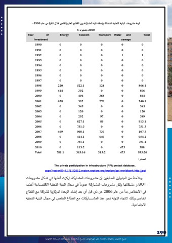 %u062c%u0645%u064a%u0639 %u0627%u0644%u062d%u0642%u0648%u0642 %u0645%u062d%u0641%u0648%u0638%u0629 %u0640 %u0627%u0625%u0644%u0639%u062a%u062f%u0627%u0621 %u0639%u0649%u0644 %u062d%u0642 %u0627%u0645%u0644%u0624%u0644%u0641 %u0628%u0627%u0644%u0646%u0633%u062e %u0623%u0648 %u0627%u0644%u0637%u0628%u0627%u0639%u0629 %u064a%u0639%u0631%u0636 %u0641%u0627%u0639%u0644%u0647 %u0644%u0644%u0645%u0633%u0627%u0626%u0644%u0629 %u0627%u0644%u0642%u0627%u0646%u0648%u0646%u064a%u0629190 190%u064e%u0644%u064a%u0629 %u0627%u0644%u0645%u0634%u0627%u0631%u0643%u0629 %u0628%u064a%u0646 %u0627%u0644%u0642%u0637%u0627%u0639 %u0627%u0644%u0639%u0627%u0645 %u0648%u0627%u0644%u062e%u0627%u0635 %u062e%u0627%u0644%u0644 %u0627%u0644%u0641%u062a%u0631%u0629 %u0645%u0646 %u0639%u0627%u0645 1990-%u0642%u064a%u0645%u0629 %u0645%u0634%u0631%u0648%u0639%u0627%u062a %u0627%u0644%u0628%u0646%u064a%u0629 %u0627%u0644%u062a%u062d%u062a%u064a%u0629 %u0627%u0644%u0645%u0646%u0634%u0623%u0629 %u0628%u0648%u0627%u0633%u0637%u0629 %u06272010 %u0628%u0627%u0644%u0645%u0644%u064a%u0648%u0646 $ of Year Investment and Water Transport Telecom Energysewage Total0 0 0 0 0 19900 0 0 0 0 19911 1 0 0 0 19920 0 0 0 0 19930 0 0 0 0 19940 0 0 0 0 19950 0 0 0 0 19960 0 0 0 0 19971 %u060c866 0 124 1 %u060c522 220 1998806 0 0 392 414 1999864 0 368 496 0 20001 %u060c340 0 270 392 678 2001345 0 0 345 0 2002120 0 0 120 0 2003389 0 97 292 0 20041 %u060c913 0 86 1 %u060c827 0 20053 %u060c751 0 0 3 %u060c751 0 20063 %u060c107 0 730 1 %u060c908 469 20072 %u060c054 0 640 1 %u060c414 0 20081 %u060c791 0 0 1 %u060c791 0 2009%u060c 588 475 0 2 %u060c113 0 201020 %u060c935 475 2 %u060c315 16 %u060c363 1 %u060c781 Total%u0627%u0644%u0645%u0635%u062f%u0631: ,database project) PPI (infrastructure in participation private Theppi://http %u060cworldbank %u060cppi/explore/org %u060cexplore %u060cregion %u060c2012/11/1,5=regionID?aspx %u0648%u064a%u0627%u0644%u062d%u0638 %u0645%u0646 %u0627%u0644%u062c%u062f%u0648%u0644%u064a%u0646 %u0627%u0644%u0633%u0640%u0640%u0640%u0627%u0628%u0642%u064a%u0646 %u0623%u0646 %u0645%u0634%u0640%u0640%u0640%u0631%u0648%u0639%u0627%u062a %u0627%u0644%u0645%u0634%u0640%u0640%u0640%u0627%u0631%u0643%u0629 %u062a%u0631%u0643%u0632%u062a %u0623%u063a%u0644%u0628%u0647%u0627 %u0641%u064a %u0634%u0640%u0640%u0640%u0643%u0644 %u0645%u0634%u0640%u0640%u0640%u0631%u0648%u0639%u0627%u062a %u064b %u0641%u064a %u0645%u062c%u0627%u0644 %u0627%u0644%u0628%u0646%u064a%u0629 %u0627%u0644%u062a%u062d%u062a%u064a%u0629 %u0627%u0627%u0644%u0642%u062a%u0635%u0640 %u0640%u0627%u062f%u064a%u0629 %u0623%u062e%u0630%u062a BOT %u0648 %u0645%u0634%u0640%u0640%u062a%u0642%u0627%u062a%u0647%u0627 %u0648 %u0644%u0643%u0646 %u0645%u0634%u0640%u0640%u0631%u0648%u0639%u0627%u062a %u0627%u0644%u0645%u0634%u0640%u0640%u0627%u0631%u0643%u0629 %u0639%u0645%u0648%u0645%u0627%u0641%u064a %u0627%u0627%u0644%u0646%u062e%u0641%u0627%u0636 %u0628%u062f%u0623 %u0645%u0646 %u0639%u0627%u0645 2006 %u0639%u0646 %u0630%u064a %u0642%u0628%u0644 %u0623%u064a %u0628%u0639%u062f %u0625%u0646%u0634%u0627%u0621 %u0627%u0644%u0648%u062d%u062f%u0629 %u0627%u0644%u0645%u0631%u0643%u0632%u064a%u0629 %u0644%u0644%u0634%u0631%u0627%u0643%u0629 %u0645%u0639 %u0627%u0644%u0642%u0637%u0627%u0639 %u0627%u0644%u062e%u0640%u0627%u0635 %u0648%u0630%u0644%u0640%u0643 %u0627%u0644%u062a%u062c%u0640%u0627%u0647 %u0627%u0644%u0640%u062f%u0648%u0644%u0640%u0629 %u0646%u062d%u0648 %u0639%u0642%u0640%u062f %u0627%u0644%u0645%u0634%u0640%u0640%u0640%u0640%u0640%u0640%u0640%u0640%u0640%u0640%u0627%u0631%u0643%u0640%u0627%u062a %u0645%u0639 %u0627%u0644%u0642%u0637%u0640%u0627%u0639 %u0627%u0644%u062e%u0640%u0627%u0635 %u0641%u064a %u0645%u062c%u0640%u0627%u0644 %u0627%u0644%u0628%u0646%u064a%u0640%u0629 %u0627%u0644%u062a%u062d%u062a%u064a%u0640%u0629 %u0627%u0627%u0644%u062c%u062a%u0645%u0627%u0639%u064a%u0629.