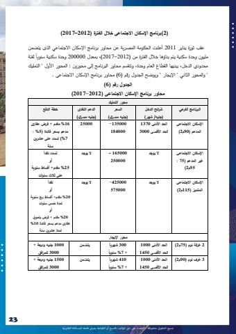 %u062c%u0645%u064a%u0639 %u0627%u0644%u062d%u0642%u0648%u0642 %u0645%u062d%u0641%u0648%u0638%u0629 %u0640 %u0627%u0625%u0644%u0639%u062a%u062f%u0627%u0621 %u0639%u0649%u0644 %u062d%u0642 %u0627%u0645%u0644%u0624%u0644%u0641 %u0628%u0627%u0644%u0646%u0633%u062e %u0623%u0648 %u0627%u0644%u0637%u0628%u0627%u0639%u0629 %u064a%u0639%u0631%u0636 %u0641%u0627%u0639%u0644%u0647 %u0644%u0644%u0645%u0633%u0627%u0626%u0644%u0629 %u0627%u0644%u0642%u0627%u0646%u0648%u0646%u064a%u0629 2323)2)%u0628%u0631%u0646%u0627%u0645%u062c %u0627%u0625%u0644%u0633%u0643%u0627%u0646 %u0627%u0627%u0644%u062c%u062a%u0645%u0627%u0639%u0649 %u062e%u0627%u0644%u0644 %u0627%u0644%u0641%u062a%u0631%u0629 )2012 %u20132017) %u0639%u0642%u0628 %u062b%u0648%u0631%u0629 %u064a%u0646%u0627%u064a%u0631 2011 %u0623%u0639%u0644%u0646%u062a %u0627%u0644%u062d%u0643%u0648%u0645%u0629 %u0627%u0644%u0645%u0635%u0631%u064a%u0629 %u0639%u0646 %u0645%u062d%u0627%u0648%u0631 %u0628%u0631%u0646%u0627%u0645%u062c %u0627%u0625%u0644%u0633%u0643%u0627%u0646 %u0627%u0627%u0644%u062c%u062a%u0645%u0627%u0639%u064a %u0627%u0644%u0630%u0649 %u064a%u062a%u0636%u0645%u0646 %u064b %u0644%u0641%u0626%u0629%u0645%u0644%u064a%u0648%u0646 %u0648%u062d%u062f%u0629 %u0633%u0643%u0646%u064a%u0629 %u064a%u062a%u0645 %u0628%u0646%u0627%u0624%u0647%u0627 %u062e%u0627%u0644%u0644 %u0627%u0644%u0641%u062a%u0631%u0629 %u0645%u0646 )2012-2017 %u060c)%u0628%u0645%u0639%u062f%u0644 200000 %u0648%u062d%u062f%u0629 %u0633%u0643%u0646%u064a%u0629 %u0633%u0646%u0648%u064a%u0627%u0645%u062d%u062f%u0648%u062f%u064a %u0627%u0644%u062f%u062e%u0644%u060c %u064a%u0628%u0646%u064a%u0647%u0627 %u0627%u0644%u0642%u0637%u0627%u0639 %u0627%u0644%u0639%u0627%u0645 %u0648%u062d%u062f%u0629%u060c %u0648%u062a%u0646%u0642%u0633%u0645 %u0645%u062d%u0627%u0648%u0631 %u0627%u0644%u0628%u0631%u0646%u0627%u0645%u062c %u0625%u0644%u0649 %u0645%u062d%u0648%u0631%u064a%u0646 : %u0627%u0644%u0645%u062d%u0648%u0631 %u0627%u0623%u0644%u0648%u0644 \ %u0627%u0644%u062a%u0645%u0644%u064a%u0643 \ %u0648%u0627%u0644%u0645%u062d%u0648%u0631 %u0627%u0644%u062b%u0627%u0646%u064a \ %u0627%u0625%u0644%u064a%u062c%u0627%u0631 \ %u0648%u064a%u0648%u0636%u062d %u0627%u0644%u062c%u062f%u0648%u0644 %u0631%u0642%u0645 )6 )%u0645%u062d%u0627%u0648%u0631 %u0628%u0631%u0646%u0627%u0645%u062c %u0627%u0625%u0644%u0633%u0643%u0627%u0646 %u0627%u0627%u0644%u062c%u062a%u0645%u0627%u0639%u0649 . %u0627%u0644%u062c%u062f%u0648%u0644 %u0631%u0642%u0645 )6 )%u0645%u062d%u0627%u0648%u0631 %u0628%u0631%u0646%u0627%u0645%u062c %u0627%u0625%u0644%u0633%u0643%u0627%u0646 %u0627%u0627%u0644%u062c%u062a%u0645%u0627%u0639%u0649 )2012 -2017 )%u0645%u062d%u0648%u0631 %u0627%u0644%u062a%u0645%u0644%u064a%u0643 %u0627%u0644%u0628%u0631%u0646%u0627%u0645%u062c %u0627%u0644%u0641%u0631%u0639%u064a %u0634%u0631%u0627%u0626%u062d %u0627%u0644%u062f%u062e%u0644 )%u062c%u0646%u064a%u0647/ %u0634%u0647%u0631( %u0627%u0644%u0633%u0639%u0631 )%u062c%u0646%u064a%u0647 %u0645%u0635%u0631%u064a(%u0627%u0644%u062f%u0639%u0645 %u0627%u0644%u0646%u0642%u062f%u0649 )%u062c%u0646%u064a%u0647 %u0645%u0635%u0631%u064a(%u062e%u0637%u0629 %u0627%u0644%u062f%u0641%u0639 %u0627%u0625%u0644%u0633%u0643%u0627%u0646 %u0627%u0627%u0644%u062c%u062a%u0645%u0627%u0639%u0649 %u0627%u0644%u0645%u062f%u0639%u0645 )90%u0645 2 )%u0627%u0644%u062d%u062f %u0627%u0623%u0644%u062f%u0646%u0649 1370%u0627%u0644%u062d%u062f %u0627%u0623%u0644%u0642%u0635%u0649 3000135000 -18400025000 16 %%u0645%u0642%u062f%u0645 + %u0642%u0631%u0636 %u0639%u0642%u0627%u0631%u0649%u0645%u062f%u0639%u0645 %u0628%u0633%u0639%u0631 %u0641%u0627%u0626%u062f%u0629 )5 : %7 )%%u062a%u0633%u062f%u062f %u0639%u0644%u0649 %u0639%u0634%u0631%u064a%u0646 %u0633%u0646%u0629%u0627%u0625%u0644%u0633%u0643%u0627%u0646 %u0627%u0627%u0644%u062c%u062a%u0645%u0627%u0639%u0649 %u063a%u064a%u0631 %u0627%u0644%u0645%u062f%u0639%u0645 )75 : 95%u0645 2)%u0627%u0644 %u064a%u0648%u062c%u062f 165000 %u2013 250000%u0627%u0627%u0644 %u064a%u0648%u062c%u062f %u062a%u0633%u062f%u062f %u0646%u0642%u062f%u0627%u0623%u0648 25 %%u0645%u0642%u062f%u0645+ %u0623%u0642%u0633%u0627%u0637 %u0633%u0646%u0648%u064a%u0629 %u0639%u0644%u0649 %u062b%u0627%u0644%u062b %u0633%u0646%u0648%u0627%u062a %u0627%u0625%u0644%u0633%u0643%u0627%u0646 %u0627%u0627%u0644%u062c%u062a%u0645%u0627%u0639%u0649 %u0627%u0644%u0645%u062a%u0645%u064a%u0632 )115%u0645 2 )%u0627%u0644 %u064a%u0648%u062c%u062f 425000 -575000%u0627%u0627%u0644 %u064a%u0648%u062c%u062f %u0646%u0642%u062f%u0627%u0623%u0648 20 %%u0645%u0642%u062f%u0645+ %u0623%u0642%u0633%u0627%u0637 %u0631%u0628%u0639 %u0633%u0646%u0648%u064a%u0629 %u0644%u0645%u062f%u0629 %u062e%u0645%u0633 %u0633%u0646%u0648%u0627%u062a %u0623%u0648 20 %%u0645%u0642%u062f%u0645 + %u0642%u0631%u0636 %u0628%u062a%u0645%u0648%u064a%u0644 %u0639%u0642%u0627%u0631%u0649 %u0645%u062f%u0639%u0645 %u0628%u0633%u0639%u0631 %u0641%u0627%u0626%u062f%u0629 10 %%u0644%u0645%u062f%u0629 %u0639%u0634%u0631%u064a%u0646 %u0633%u0646%u0629 %u0645%u062d%u0648%u0631 %u0627%u0625%u0644%u064a%u062c%u0627%u0631 2 %u063a%u0631%u0641%u0629 %u0646%u0648%u0645 )75%u06452 )%u0627%u0644%u062d%u062f %u0627%u0623%u0644%u062f%u0646%u0649 1000%u0627%u0644%u062d%u062f %u0627%u0623%u0644%u0642%u0635%u0649 1450%u0627300 %u0634%u0647%u0631%u064a%u0627%u0627+ 7 %%u0633%u0646%u0648%u064a%u0627%u064a%u062a%u0636%u0645%u0646 1000 %u062c%u0646%u064a%u0647 %u0648%u062f%u064a%u0639%u0629 + 3000 %u0644%u0644%u0645%u0631%u0627%u0641%u0642 3 %u063a%u0631%u0641 %u0646%u0648%u0645 ) 90%u0645 2 )%u0627%u0644%u062d%u062f %u0627%u0623%u0644%u062f%u0646%u0649 1000%u0627%u0644%u062d%u062f %u0627%u0623%u0644%u0642%u0635%u0649 1450%u0627410 %u0634%u0647%u0631%u064a%u0627%u0627+ 7 %%u0633%u0646%u0648%u064a%u0627%u064a%u062a%u0636%u0645%u0646 1500 %u062c%u0646%u064a%u0647 %u0648%u062f%u064a%u0639%u0629 + 3000 %u0644%u0644%u0645%u0631%u0627%u0641%u0642