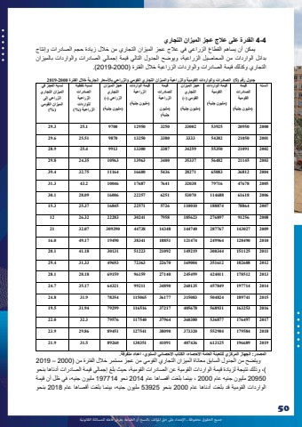 %u062c%u0645%u064a%u0639 %u0627%u0644%u062d%u0642%u0648%u0642 %u0645%u062d%u0641%u0648%u0638%u0629 %u0640 %u0627%u0625%u0644%u0639%u062a%u062f%u0627%u0621 %u0639%u0649%u0644 %u062d%u0642 %u0627%u0645%u0644%u0624%u0644%u0641 %u0628%u0627%u0644%u0646%u0633%u062e %u0623%u0648 %u0627%u0644%u0637%u0628%u0627%u0639%u0629 %u064a%u0639%u0631%u0636 %u0641%u0627%u0639%u0644%u0647 %u0644%u0644%u0645%u0633%u0627%u0626%u0644%u0629 %u0627%u0644%u0642%u0627%u0646%u0648%u0646%u064a%u062950 504-4 %u0627%u0644%u0642%u062f%u0631%u0629 %u0639%u0644%u0649 %u0639%u0627%u0644%u062c %u0639%u062c%u0632 %u0627%u0644%u0645%u064a%u0632%u0627%u0646 %u0627%u0644%u062a%u062c%u0627%u0631%u064a %u064a%u0645%u0643%u0646 %u0623%u0646 %u064a%u0633%u0627%u0647%u0645 %u0627%u0644%u0642%u0637%u0627%u0639 %u0627%u0644%u0632%u0631%u0627%u0639%u064a %u0641%u064a %u0639%u0627%u0644%u062c %u0639%u062c%u0632 %u0627%u0644%u0645%u064a%u0632%u0627%u0646 %u0627%u0644%u062a%u062c%u0627%u0631%u064a %u0645%u0646 %u062e%u0627%u0644%u0644 %u0632%u064a%u0627%u062f%u0629 %u062d%u062c%u0645 %u0627%u0644%u0635%u0627%u062f%u0631%u0627%u062a %u0648%u0625%u0646%u062a%u0627%u062c %u0628%u062f%u0627%u0626%u0644 %u0627%u0644%u0648%u0627%u0631%u062f%u0627%u062a %u0645%u0646 %u0627%u0644%u0645%u062d%u0627%u0635%u064a%u0644 %u0627%u0644%u0632%u0631%u0627%u0639%u064a%u0629%u060c %u0648%u064a%u0648%u0636%u062d %u0627%u0644%u062c%u062f%u0648%u0644 %u0627%u0644%u062a%u0627%u0644%u064a %u0642%u064a%u0645%u0629 %u0625%u062c%u0645%u0627%u0644%u064a %u0627%u0644%u0635%u0627%u062f%u0631%u0627%u062a %u0648%u0627%u0644%u0648%u0627%u0631%u062f%u0627%u062a %u0628%u0627%u0644%u0645%u064a%u0632%u0627%u0646 %u0627%u0644%u062a%u062c%u0627%u0631%u064a %u0648%u0643%u0630%u0644%u0643 %u0642%u064a%u0645%u0629 %u0627%u0644%u0635%u0627%u062f%u0631%u0627%u062a %u0648%u0627%u0644%u0648%u0627%u0631%u062f%u0627%u062a %u0627%u0644%u0632%u0631%u0627%u0639%u064a%u0629 %u062e%u0627%u0644%u0644 %u0627%u0644%u0641%u062a%u0631%u0629 ) 2000-2019 .)%u062c%u062f%u0648%u0644 %u0631%u0642%u0645 )5 )%u0627%u0644%u0635%u0627%u062f%u0631%u0627%u062a %u0648%u0627%u0644%u0648%u0627%u0631%u062f%u0627%u062a %u0627%u0644%u0642%u0648%u0645%u064a%u0629 %u0648%u0627%u0644%u0632%u0631%u0627%u0639%u064a%u0629 %u0648%u0627%u0644%u0645%u064a%u0632%u0627%u0646 %u0627%u0644%u062a%u062c%u0627%u0631%u064a %u0627%u0644%u0642%u0648%u0645%u064a %u0648%u0627%u0644%u0632%u0631%u0627%u0639%u064a %u0628%u0627%u0623%u0644%u0633%u0639%u0627%u0631 %u0627%u0644%u062c%u0627%u0631%u064a%u0629 %u062e%u0627%u0644%u0644 %u0627%u0644%u0641%u062a%u0631%u0629 2000-2019%u0627%u0644%u0633%u0646%u0629 %u0642%u064a%u0645%u0629 %u0627%u0644%u0635%u0627%u062f%u0631%u0627%u062a %u0627%u0644%u0642%u0648%u0645%u064a%u0629 )%u0645%u0644%u064a%u0648%u0646 %u062c%u0646%u064a%u0629(%u0642%u064a%u0645%u0629 %u0627%u0644%u0648%u0627%u0631%u062f%u0627%u062a %u0627%u0644%u0642%u0648%u0645%u064a%u0629)%u0645%u0644%u064a%u0648%u0646 %u062c%u0646%u064a%u0629(%u0639%u062c%u0632 %u0627%u0644%u0645%u064a%u0632%u0627%u0646 %u0627%u0644%u062a%u062c%u0627%u0631%u064a %u0627%u0644%u0642%u0648%u0645%u064a )-()%u0645%u0644%u064a%u0648%u0646 %u062c%u0646%u064a%u0629(%u0642%u064a%u0645%u0629 %u0627%u0644%u0635%u0627%u062f%u0631%u0627%u062a %u0627%u0644%u0632%u0631%u0627%u0639%u064a%u0629 )%u0645%u0644%u064a%u0648%u0646 %u062c%u0646%u064a%u0629( %u0642%u064a%u0645%u0629 %u0627%u0644%u0648%u0627%u0631%u062f%u0627%u062a %u0627%u0644%u0632%u0631%u0627%u0639%u064a%u0629 )%u0645%u0644%u064a%u0648%u0646 %u062c%u0646%u064a%u0629(%u0639%u062c%u0632 %u0627%u0644%u0645%u064a%u0632%u0627%u0646 %u0627%u0644%u062a%u062c%u0627%u0631%u064a %u0627%u0644%u0632%u0631%u0627%u0639%u064a )-( )%u0645%u0644%u064a%u0648%u0646 %u062c%u0646%u064a%u0629(%u0646%u0633%u0628%u0629 %u062a%u063a%u0637%u064a%u0629 %u0627%u0644%u0635%u0627%u062f%u0631%u0627%u062a %u0627%u0644%u0632%u0631%u0627%u0639%u064a%u0629 %u0644%u0644%u0648%u0627%u0631%u062f%u0627%u062a %u0627%u0644%u0632%u0631%u0627%u0639%u064a%u0629 )%( %u0646%u0633%u0628%u0629 %u0627%u0644%u0639%u062c%u0632 %u0641%u064a%u0627%u0644%u0645%u064a%u0632%u0627%u0646 %u0627%u0644%u062a%u062c%u0627%u0631%u064a %u0627%u0644%u0632%u0631%u0627%u0639%u064a %u0625%u0644%u0649%u0627%u0644%u0645%u064a%u0632%u0627%u0646 %u0627%u0644%u0642%u0648%u0645%u064a )%(2000 20950 53925 33002 3250 12950 9700 1.25 3.292001 21050 54382 3333 3380 13250 9870 51.25 6.292002 21091 55350 34259 3387 13300 9913 4.25 9.282003 21145 56482 35337 3400 13963 10963 35.24 8.292004 36812 65083 28271 5436 16600 11164 75.32 4.392005 47678 79716 32038 7641 17687 10046 2.43 3.312006 61618 114688 53070 6251 22257 16006 09.28 1.302007 78864 188874 110010 5726 22571 16845 37.25 3.152008 91256 276897 185623 7958 30241 22283 32.26 122009 143027 287767 144740 14348 44738 309390 07.32 212010 128490 249964 121474 18851 38341 19490 17.49 0.162011 151125 300344 149219 21092 51223 30131 18.41 1.202012 182608 351612 169004 22670 72363 49693 33.31 4.292013 178512 424011 245499 27140 96159 69159 18.28 1.282014 197714 457849 260135 34890 99211 64321 17.35 7.242015 189741 504824 315083 36177 115065 78354 9.31 8.242016 163253 568931 405678 37217 116516 79299 94.31 5.192017 176497 536877 360380 37964 117540 79576 3.32 0.222018 179584 552904 373320 38090 127541 89451 86.29 9.232019 196689 613125 407436 41091 130351 89260 5.31 9.21%u0627%u0644%u0645%u0635%u062f%u0631: %u0627%u0644%u062c%u0647%u0627%u0632 %u0627%u0644%u0645%u0631%u0643%u0632 %u064a %u0644%u0644%u062a%u0639%u0628%u0626%u0629 %u0627%u0644%u0639%u0627%u0645%u0629 %u0627%u0627%u0644%u062d%u0635%u0627%u0621%u060c %u0627%u0644%u0643%u062a%u0627%u0628 %u0627%u0627%u0644%u062d%u0635%u0627%u0626%u064a %u0627%u0644%u0633%u0646%u0648 %u064a %u060c %u0627%u0639%u062f%u0627%u062f %u0645%u062a%u0641%u0631%u0642%u0629. %u0648%u064a%u062a%u0636%u062d %u0645%u0646 %u0627%u0644%u062c%u062f%u0648%u0644 %u0627%u0644%u0633%u0627%u0628%u0642 %u0645%u0639%u0627%u0646%u0627%u0629 %u0627%u0644%u0645%u064a%u0632%u0627%u0646 %u0627%u0644%u062a%u062c%u0627%u0631