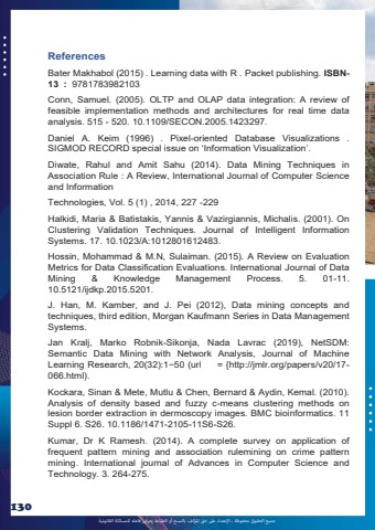 %u062c%u0645%u064a%u0639 %u0627%u0644%u062d%u0642%u0648%u0642 %u0645%u062d%u0641%u0648%u0638%u0629 %u0640 %u0627%u0625%u0644%u0639%u062a%u062f%u0627%u0621 %u0639%u0649%u0644 %u062d%u0642 %u0627%u0645%u0644%u0624%u0644%u0641 %u0628%u0627%u0644%u0646%u0633%u062e %u0623%u0648 %u0627%u0644%u0637%u0628%u0627%u0639%u0629 %u064a%u0639%u0631%u0636 %u0641%u0627%u0639%u0644%u0647 %u0644%u0644%u0645%u0633%u0627%u0626%u0644%u0629 %u0627%u0644%u0642%u0627%u0646%u0648%u0646%u064a%u06298operations) 5. Data mining (an essential process where intelligent methods are applied to extract data patterns) 6. Pattern evaluation (to identify the truly interesting patterns representing knowledge based on interestingness measures) 7. Knowledge presentation (where visualization and knowledge representation techniques are used to present mined knowledge to users) III. Data and Patterns that Can Be Mined The most basic forms of data for mining applications are database data , data warehouse data, and transactional data. Data mining can also be applied to other forms of data (e.g.,data streams, ordered/sequence data, graph or networked data, spatial data, text data, multimedia data, and the WWW). Data mining functionalities are used to specify the kinds of patterns to be found in data mining tasks. In general, such tasks can be classified into two categories: descriptive and predictive. Descriptive mining tasks characterize properties of the data in a target data set. Predictive mining tasks perform induction on the current data in order to make predictions.