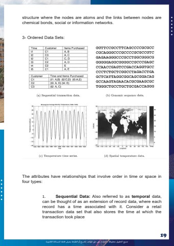 %u062c%u0645%u064a%u0639 %u0627%u0644%u062d%u0642%u0648%u0642 %u0645%u062d%u0641%u0648%u0638%u0629 %u0640 %u0627%u0625%u0644%u0639%u062a%u062f%u0627%u0621 %u0639%u0649%u0644 %u062d%u0642 %u0627%u0645%u0644%u0624%u0644%u0641 %u0628%u0627%u0644%u0646%u0633%u062e %u0623%u0648 %u0627%u0644%u0637%u0628%u0627%u0639%u0629 %u064a%u0639%u0631%u0636 %u0641%u0627%u0639%u0644%u0647 %u0644%u0644%u0645%u0633%u0627%u0626%u0644%u0629 %u0627%u0644%u0642%u0627%u0646%u0648%u0646%u064a%u062919structure where the nodes are atoms and the links between nodes are chemical bonds, social or information networks. 3- Ordered Data Sets: The attributes have relationships that involve order in time or space in four types: 1. Sequential Data: Also referred to as temporal data, can be thought of as an extension of record data, where each record has a time associated with it. Consider a retail transaction data set that also stores the time at which the transaction took place