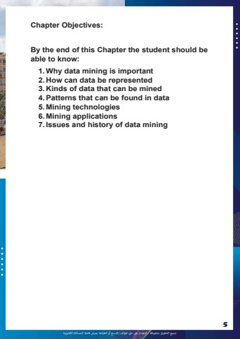 %u062c%u0645%u064a%u0639 %u0627%u0644%u062d%u0642%u0648%u0642 %u0645%u062d%u0641%u0648%u0638%u0629 %u0640 %u0627%u0625%u0644%u0639%u062a%u062f%u0627%u0621 %u0639%u0649%u0644 %u062d%u0642 %u0627%u0645%u0644%u0624%u0644%u0641 %u0628%u0627%u0644%u0646%u0633%u062e %u0623%u0648 %u0627%u0644%u0637%u0628%u0627%u0639%u0629 %u064a%u0639%u0631%u0636 %u0641%u0627%u0639%u0644%u0647 %u0644%u0644%u0645%u0633%u0627%u0626%u0644%u0629 %u0627%u0644%u0642%u0627%u0646%u0648%u0646%u064a%u06295Chapter Objectives: By the end of this Chapter the student should be able to kno 1. Why data mining is important 2. How can data be represented 3. Kinds of data that can be mined 4. Patterns that can be found in data 5. Mining technologies 6. Mining applications 7. Issues and history of data mining