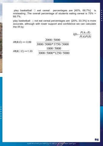%u062c%u0645%u064a%u0639 %u0627%u0644%u062d%u0642%u0648%u0642 %u0645%u062d%u0641%u0648%u0638%u0629 %u0640 %u0627%u0625%u0644%u0639%u062a%u062f%u0627%u0621 %u0639%u0649%u0644 %u062d%u0642 %u0627%u0645%u0644%u0624%u0644%u0641 %u0628%u0627%u0644%u0646%u0633%u062e %u0623%u0648 %u0627%u0644%u0637%u0628%u0627%u0639%u0629 %u064a%u0639%u0631%u0636 %u0641%u0627%u0639%u0644%u0647 %u0644%u0644%u0645%u0633%u0627%u0626%u0644%u0629 %u0627%u0644%u0642%u0627%u0646%u0648%u0646%u064a%u062985play basketball eat cereal percentages are [40%, 66.7%] is misleading ,The overall percentage of students eating cereal is 75% > 66.7%. play basketball not eat cereal percentages are [20%, 33.3%] is more accurate, although with lower support and confidence we can calculate the lift by: lift(B,C) == 0.89lift(B, C) ==1.33