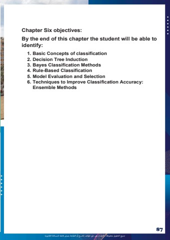 %u062c%u0645%u064a%u0639 %u0627%u0644%u062d%u0642%u0648%u0642 %u0645%u062d%u0641%u0648%u0638%u0629 %u0640 %u0627%u0625%u0644%u0639%u062a%u062f%u0627%u0621 %u0639%u0649%u0644 %u062d%u0642 %u0627%u0645%u0644%u0624%u0644%u0641 %u0628%u0627%u0644%u0646%u0633%u062e %u0623%u0648 %u0627%u0644%u0637%u0628%u0627%u0639%u0629 %u064a%u0639%u0631%u0636 %u0641%u0627%u0639%u0644%u0647 %u0644%u0644%u0645%u0633%u0627%u0626%u0644%u0629 %u0627%u0644%u0642%u0627%u0646%u0648%u0646%u064a%u062987Chapter Six objectives:By the end of this chapter the student will be able to identify:1. Basic Concepts of classification 2. Decision Tree Induction 3. Bayes Classification Methods 4. Rule-Based Classification 5. Model Evaluation and Selection 6. Techniques to Improve Classification Accuracy: Ensemble Methods