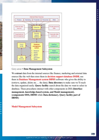 %u062c%u0645%u064a%u0639 %u0627%u0644%u062d%u0642%u0648%u0642 %u0645%u062d%u0641%u0648%u0638%u0629 %u0640 %u0627%u0625%u0644%u0639%u062a%u062f%u0627%u0621 %u0639%u0649%u0644 %u062d%u0642 %u0627%u0645%u0644%u0624%u0644%u0641 %u0628%u0627%u0644%u0646%u0633%u062e %u0623%u0648 %u0627%u0644%u0637%u0628%u0627%u0639%u0629 %u064a%u0639%u0631%u0636 %u0641%u0627%u0639%u0644%u0647 %u0644%u0644%u0645%u0633%u0627%u0626%u0644%u0629 %u0627%u0644%u0642%u0627%u0646%u0648%u0646%u064a%u062919lOMoAR cPSD|10120753Grey area = Data Management SubsystemWe extract data from the internal sources like finance, marketing and external datasources like the web then store them in decision support database DSDB, usethem in Database Management system DBMS software who gives the ability to(retrieve, update, delete etc.%u2026 the data). Data directory to make sure we%u2019ll reachthe data organized easily. Query facility search about the data we want to select indatabase. These procedures interact with other components in DSS (Interfacemanagement, knowledge-based system, and Model management).(components=DSS, DBMS while Data dictionary, Query facility part ofDBMS)Model Management Subsystem