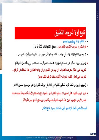 %u062c%u0645%u064a%u0639 %u0627%u0644%u062d%u0642%u0648%u0642 %u0645%u062d%u0641%u0648%u0638%u0629 %u0640 %u0627%u0625%u0644%u0639%u062a%u062f%u0627%u0621 %u0639%u0649%u0644 %u062d%u0642 %u0627%u0645%u0644%u0624%u0644%u0641 %u0628%u0627%u0644%u0646%u0633%u062e %u0623%u0648 %u0627%u0644%u0637%u0628%u0627%u0639%u0629 %u064a%u0639%u0631%u0636 %u0641%u0627%u0639%u0644%u0647 %u0644%u0644%u0645%u0633%u0627%u0626%u0644%u0629 %u0627%u0644%u0642%u0627%u0646%u0648%u0646%u064a%u0629108%u062a%u0627%u0628%u0639 %u0623%u0648%u0627%u0644 %u0634%u0631%u0648%u0637 %u0627%u0644%u062a%u0637%u0628%u064a%u0642 %u2022 4 -%u0627%u0644%u062a%u0639%u0644%u0645 %u0627%u0644%u0632%u0627%u0626%u062f overlearning%u2022 %u0647%u0648 %u0627%u0633%u062a%u0645%u0631%u0627%u0631 %u0645%u0645%u0627%u0631%u0633%u0629 %u0627%u0644%u062a%u062f%u0631%u064a%u0628 %u0623%u0644%u0628%u0639%u062f %u0645%u062f%u0649. %u0648%u064a%u062d%u0642%u0642 %u0627%u0644%u062a%u0639%u0644%u0645 %u0627%u0644%u0632%u0627%u0626%u062f %u062b%u0627%u0644%u062b%u0629 %u0641%u0648%u0627%u0626%u062f : %u2022 1 -%u064a%u062d%u0633%u0646 %u0627%u0644%u062a%u0639%u0644%u0645 %u0627%u0644%u0632%u0627%u0626%u062f %u0627%u0623%u0644%u062f%u0627%u0621 %u0641%u0649 %u0645%u0648%u0627%u0642%u0641 %u0645%u062e%u062a%u0644%u0641%u0629 %u0648%u0645%u062a%u0646%u0648%u0639%u0629.%u0648%u062a%u0637%u0648%u064a%u0631 %u0645%u0647%u0627%u0631%u0629 %u0627%u0644%u0631%u0628%u0637 %u0628%u064a%u0646 %u0623%u062c%u0632%u0627%u0621 %u0627%u0644%u0645%u0647%u0645%u0629 . %u2022 2 -%u064a%u0648%u0641%u0631 %u062a%u062f%u0631%u064a%u0628%u0627 %u0627%u0636%u0627%u0641%u064a%u0627 %u0639%u0644%u0649 %u0627%u0633%u062a%u062e%u062f%u0627%u0645 %u0627%u0644%u0645%u0647%u0627%u0631%u0627%u062a %u0639%u0646%u062f%u0645%u0627 %u062a%u0646%u062e%u0641%u0636 %u0641%u0631%u0635%u0629 %u0627%u0633%u062a%u062e%u062f%u0627%u0645%u0647%u0627 %u0641%u0649 %u0628%u064a%u0626%u0629 %u0627%u0644%u0639%u0645%u0644 %u0627%u0644%u062d%u0642%u064a%u0642%u064a%u0629) %u0627%u0644%u062a%u062f%u0631%u064a%u0628 %u0639%u0644%u0649 %u0623%u0639%u0637%u0627%u0644 %u0645%u062d%u0631%u0643%u0627%u062a %u0627%u0644%u0637%u0627%u0626%u0631%u0627%u062a %u0623%u0644%u0646 %u0644%u064a%u0633 %u0645%u0646 %u0627%u0644%u0636%u0631%u0648%u0631%u0649 %u0623%u0646 %u064a%u0648%u0627%u062c%u0647 %u0627%u0644%u0637%u064a%u0627%u0631%u064a%u0646 %u0647%u0630%u0627 %u0627%u0644%u0645%u0648%u0642%u0641 %u0641%u0649 %u0627%u0644%u0648%u0627%u0642%u0639 %u2013%u0627%u0644%u062a%u062f%u0631%u064a%u0628 %u0639%u0644%u0649 %u0627%u0646%u0639%u0627%u0634 %u0627%u0644%u0642%u0644%u0628%u060c %u0627%u0644 %u064a%u0648%u0627%u062c%u0647 %u0627%u0623%u0644%u0637%u0628%u0627%u0621 %u062d%u0627%u0627%u0644%u062a %u062a%u0648%u0642%u0641 %u0627%u0644%u0642%u0644%u0628 %u064a%u0648%u0645%u064a%u0627(%u2022 3 -%u064a%u062c%u0628 %u0623%u0646 %u064a%u0624%u062f%u0649 %u0627%u0644%u062a%u0639%u0644%u0645 %u0627%u0644%u0632%u0627%u0626%u062f %u0644%u062a%u062d%u0642%u064a%u0642 %u062a%u0644%u0642%u0627%u0626%u064a%u0629 %u0641%u0649 %u0627%u0623%u0644%u062f%u0627%u0621 %u0641%u0649 %u0645%u0648%u0627%u0642%u0641 %u0627%u0644%u0637%u0648%u0627%u0631%u0626 %u0623%u0643%u062b%u0631 %u0645%u0646 %u0645%u062c%u0631%u062f %u062a%u062d%u0633%u064a%u0646 %u0627%u0623%u0644%u062f%u0627%u0621 . %u2022 %u062a%u0643%u0631%u0627%u0631 %u062a%u062f%u0631%u064a%u0628 %u0627%u0644%u062c%u0646%u0648%u062f %u0639%u0644%u0649 %u0627%u0644%u0645%u0646%u0627%u0648%u0631%u0627%u062a %u0648%u0645%u0647%u0627%u0645 %u0627%u0637%u0627%u0644%u0642 %u0627%u0644%u0646%u0627%u0631 %u0648%u0627%u0644%u0635%u0648%u0627%u0631%u064a%u062e %u0648%u0627%u0633%u062a%u062e%u062f%u0627%u0645 %u0627%u0623%u0644%u0633%u0644%u062d%u0629 %u0627%u0644%u0645%u062a%u0646%u0648%u0639%u0629 %u0628%u062d%u064a%u062b %u0639%u0646%u062f%u0645%u0627 %u062a%u0635%u062f%u0631 %u0627%u0623%u0644%u0648%u0627%u0645%u0631 %u0628%u0627%u0644%u0647%u062c%u0648%u0645 %u062a%u0643%u0648%u0646 %u0647%u0630%u0647 %u0627%u0644%u0645%u0647%u0627%u0645 %u062a%u0644%u0642%u0627%u0626%u064a%u0629 %u0628%u0627%u0644%u0646%u0633%u0628%u0629 %u0644%u0644%u062c%u0646%u0648%u062f %u0648%u064a%u0645%u0643%u0646%u0647%u0645 %u0623%u062f%u0627%u0626%u0647%u0627 %u0628%u0633%u0631%u0639%u0629 %u0648%u062f%u0642%u0629. %u0627%u0644%u0639%u064a%u0628 %u0627%u0623%u0644%u0633%u0627%u0633%u064a %u0644%u0644%u062a%u0639%u0644%u0645 %u0627%u0644%u0632%u0627%u0626%u062f %u0647%u0648 %u0637%u0648%u0644 %u0645%u062f%u0629 %u0627%u0644%u062a%u062f%u0631%u064a%u0628 %u0648%u0627%u0631%u062a%u0641%u0627%u0639 %u062a%u0643%u0644%u0641%u062a%u0647.