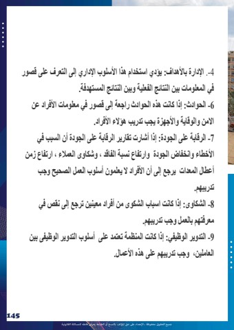 %u062c%u0645%u064a%u0639 %u0627%u0644%u062d%u0642%u0648%u0642 %u0645%u062d%u0641%u0648%u0638%u0629 %u0640 %u0627%u0625%u0644%u0639%u062a%u062f%u0627%u0621 %u0639%u0649%u0644 %u062d%u0642 %u0627%u0645%u0644%u0624%u0644%u0641 %u0628%u0627%u0644%u0646%u0633%u062e %u0623%u0648 %u0627%u0644%u0637%u0628%u0627%u0639%u0629 %u064a%u0639%u0631%u0636 %u0641%u0627%u0639%u0644%u0647 %u0644%u0644%u0645%u0633%u0627%u0626%u0644%u0629 %u0627%u0644%u0642%u0627%u0646%u0648%u0646%u064a%u06291454 .-%u0627%u0625%u0644%u062f%u0627%u0631%u0629 %u0628%u0627%u0623%u0644%u0647%u062f%u0627%u0641: %u064a%u0624%u062f%u064a %u0627%u0633%u062a%u062e%u062f%u0627%u0645 %u0647%u0630%u0627 %u0627%u0623%u0644%u0633%u0644%u0648%u0628 %u0627%u0625%u0644%u062f%u0627%u0631%u064a %u0625%u0644%u0649 %u0627%u0644%u062a%u0639%u0631%u0641 %u0639%u0644%u0649 %u0642%u0635%u0648%u0631 %u0641%u064a %u0627%u0644%u0645%u0639%u0644%u0648%u0645%u0627%u062a %u0628%u064a%u0646 %u0627%u0644%u0646%u062a%u0627%u0626%u062c %u0627%u0644%u0641%u0639%u0644%u064a%u0629 %u0648%u0628%u064a%u0646 %u0627%u0644%u0646%u062a%u0627%u0626%u062c %u0627%u0644%u0645%u0633%u062a%u0647%u062f%u0641%u0629.6 -%u0627%u0644%u062d%u0648%u0627%u062f%u062b: %u0625%u0630%u0627 %u0643%u0627%u0646%u062a %u0647%u0630%u0647 %u0627%u0644%u062d%u0648%u0627%u062f%u062b %u0631%u0627%u062c%u0639%u0629 %u0625%u0644%u0649 %u0642%u0635%u0648%u0631 %u0641%u064a %u0645%u0639%u0644%u0648%u0645%u0627%u062a %u0627%u0623%u0644%u0641%u0631%u0627%u062f %u0639%u0646 %u0627%u0627%u0644%u0645%u0646 %u0648%u0627%u0644%u0648%u0642%u0627%u064a%u0629 %u0648%u0627%u0623%u0644%u062c%u0647%u0632%u0629 %u064a%u062c%u0628 %u062a%u062f%u0631%u064a%u0628 %u0647%u0624%u0627%u0644%u0621 %u0627%u0623%u0644%u0641%u0631%u0627%u062f.7 -%u0627%u0644%u0631%u0642%u0627%u0628%u0629 %u0639%u0644%u0649 %u0627%u0644%u062c%u0648%u062f%u0629: %u0625%u0630%u0627 %u0623%u0634%u0627%u0631%u062a %u062a%u0642%u0627%u0631%u064a%u0631 %u0627%u0644%u0631%u0642%u0627%u0628%u0629 %u0639%u0644%u0649 %u0627%u0644%u062c%u0648%u062f%u0629 %u0623%u0646 %u0627%u0644%u0633%u0628%u0628 %u0641%u064a %u0627%u0623%u0644%u062e%u0637%u0627%u0621 %u0648%u0627%u0646%u062e%u0641%u0627%u0636 %u0627%u0644%u062c%u0648%u062f%u0629 %u0648%u0627%u0631%u062a%u0641%u0627%u0639 %u0646%u0633%u0628%u0629 %u0627%u0644%u0641%u0627%u0642%u062f %u060c %u0648%u0634%u0643%u0627%u0648%u0649 %u0627%u0644%u0639%u0645%u0627%u0644%u0621 %u060c %u0627%u0631%u062a%u0641%u0627%u0639 %u0632%u0645%u0646 %u0623%u0639%u0637%u0627%u0644 %u0627%u0644%u0645%u0639%u062f%u0627%u062a %u064a%u0631%u062c%u0639 %u0625%u0644%u0649 %u0623%u0646 %u0627%u0623%u0644%u0641%u0631%u0627%u062f %u0627%u0644 %u064a%u0639%u0644%u0645%u0648%u0646 %u0623%u0633%u0644%u0648%u0628 %u0627%u0644%u0639%u0645%u0644 %u0627%u0644%u0635%u062d%u064a%u062d %u0648%u062c%u0628 %u062a%u062f%u0631%u064a%u0628%u0647%u0645.8 -%u0627%u0644%u0634%u0643%u0627%u0648%u0649: %u0625%u0630%u0627 %u0643%u0627%u0646%u062a %u0627%u0633%u0628%u0627%u0628 %u0627%u0644%u0634%u0643%u0648%u0649 %u0645%u0646 %u0623%u0641%u0631%u0627%u062f %u0645%u0639%u064a%u0646%u064a%u0646 %u062a%u0631%u062c%u0639 %u0625%u0644%u0649 %u0646%u0642%u0635 %u0641%u064a %u0645%u0639%u0631%u0641%u062a%u0647%u0645 %u0628%u0627%u0644%u0639%u0645%u0644 %u0648%u062c%u0628 %u062a%u062f%u0631%u064a%u0628%u0647%u0645.9 -%u0627%u0644%u062a%u062f%u0648%u064a%u0631 %u0627%u0644%u0648%u0638%u064a%u0641%u064a: %u0625%u0630%u0627 %u0643%u0627%u0646%u062a %u0627%u0644%u0645%u0646%u0638%u0645%u0629 %u062a%u0639%u062a%u0645%u062f %u0639%u0644%u0649 %u0623%u0633%u0644%u0648%u0628 %u0627%u0644%u062a%u062f%u0648%u064a%u0631 %u0627%u0644%u0648%u0638%u064a%u0641%u0649 %u0628%u064a%u0646 %u0627%u0644%u0639%u0627%u0645%u0644%u064a%u0646%u060c %u0648%u062c%u0628 %u062a%u062f%u0631%u064a%u0628%u0647%u0645 %u0639%u0644%u0649 %u0647%u0630%u0647 %u0627%u0623%u0644%u0639%u0645%u0627%u0644.
