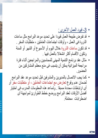 %u062c%u0645%u064a%u0639 %u0627%u0644%u062d%u0642%u0648%u0642 %u0645%u062d%u0641%u0648%u0638%u0629 %u0640 %u0627%u0625%u0644%u0639%u062a%u062f%u0627%u0621 %u0639%u0649%u0644 %u062d%u0642 %u0627%u0645%u0644%u0624%u0644%u0641 %u0628%u0627%u0644%u0646%u0633%u062e %u0623%u0648 %u0627%u0644%u0637%u0628%u0627%u0639%u0629 %u064a%u0639%u0631%u0636 %u0641%u0627%u0639%u0644%u0647 %u0644%u0644%u0645%u0633%u0627%u0626%u0644%u0629 %u0627%u0644%u0642%u0627%u0646%u0648%u0646%u064a%u0629170%u2022 3 -%u0642%u064a%u0648%u062f %u0627%u0644%u0639%u0645%u0644 %u0627%u0623%u0644%u062e%u0631%u0649 : %u2022 %u0642%u062f %u062a%u0641%u0631%u0636 %u0637%u0628%u064a%u0639%u0629 %u0627%u0644%u0639%u0645%u0644 %u0642%u064a%u0648%u062f%u0627 %u0639%u0644%u0649 %u062a%u062d%u062f%u064a%u062f %u0645%u0648%u0639%u062f %u0627%u0644%u0628%u0631%u0627%u0645%u062c %u0645%u062b%u0644 %u0633%u0627%u0639%u0627%u062a %u0627%u0644%u0630%u0631%u0648%u0629 %u0641%u0649 %u0627%u0644%u0639%u0645%u0644 %u060c %u0648%u0623%u0648%u0642%u0627%u062a %u0627%u062c%u062a%u0645%u0627%u0639%u0627%u062a %u0627%u0644%u0639%u0627%u0645%u0644%u064a%u0646 %u060c %u0645%u062a%u0637%u0644%u0628%u0627%u062a %u0627%u0644%u0633%u0641%u0631 .%u2022 %u0642%u062f %u062a%u0643%u0648%u0646 %u0633%u0627%u0639%u0627%u062a %u0627%u0644%u0630%u0631%u0648%u0629 %u062e%u0627%u0644%u0644 %u0627%u0644%u064a%u0648%u0645 %u0623%u0648 %u0627%u0623%u0644%u0633%u0628%u0648%u0639 %u0623%u0648 %u0627%u0644%u0634%u0647%u0631 %u0623%u0648 %u0627%u0644%u0633%u0646%u0629 %u0648%u062a%u0643%u0648%u0646 %u0627%u0623%u0644%u0642%u0633%u0627%u0645 %u0623%u0643%u062b%u0631 %u0627%u0646%u0634%u063a%u0627%u0627%u0644 %u0628%u0627%u0644%u0639%u0645%u0644 %u0641%u064a%u0647%u0627 . %u2022 %u0645%u062b%u0627%u0644 %u0639%u0642%u062f %u0628%u0631%u0646%u0627%u0645%u062c %u0627%u0644%u062a%u0646%u0645%u064a%u0629 %u0627%u0644%u0645%u0647%u0646%u0649 %u0644%u0644%u0645%u062d%u0627%u0633%u0628%u064a%u0646 %u0648%u0627%u0644%u0645%u0631%u0627%u062c%u0639%u064a%u0646 %u0623%u062b%u0646%u0627%u0621 %u0641%u062a%u0631%u0629 %u0645%u0631%u0627%u062c%u0639%u0629 %u0627%u0644%u0645%u064a%u0632%u0627%u0646%u064a%u0629 %u064a%u0645%u0643%u0646 %u0623%u0646 %u064a%u062a%u0633%u0628%u0628 %u0641%u0649 %u0645%u0646%u0639 %u0645%u0639%u0638%u0645 %u0627%u0644%u0645%u0634%u0627%u0631%u0643%u064a%u0646 %u0645%u0646 %u0627%u0644%u062d%u0636%u0648%u0631.%u2022 %u0643%u0645%u0627 %u064a%u062c%u0628 %u0627%u0627%u0644%u062a%u0635%u0627%u0644 %u0628%u0627%u0644%u0645%u062f%u064a%u0631%u064a%u0646 %u0648%u0627%u0644%u0645%u0634%u0631%u0641%u064a%u0646 %u0642%u0628%u0644 %u062a%u062d%u062f%u064a%u062f %u0645%u0648%u0639%u062f %u0639%u0642%u062f %u0627%u0644%u0628%u0631%u0627%u0645%u062c %u0644%u0636%u0645%u0627%u0646 %u0639%u062f%u0645 %u0648%u0642%u0648%u0639 %u062a%u0639%u0627%u0631%u0636 %u0645%u0639 %u0627%u062c%u062a%u0645%u0627%u0639%u0627%u062a %u0627%u0644%u0639%u0627%u0645%u0644%u064a%u0646 %u060c %u0623%u0648 %u0645%u062a%u0637%u0644%u0628%u0627%u062a %u0633%u0641%u0631 %u0623%u0648 %u0623%u0649 %u0627%u0631%u062a%u0628%u0627%u0637%u0627%u062a %u0645%u062d%u062f%u062f%u0629 %u0645%u0633%u0628%u0642%u0627 . %u0648%u062a%u0633%u0627%u0639%u062f %u0647%u0630%u0647 %u0627%u0644%u0645%u0639%u0644%u0648%u0645%u0627%u062a %u0627%u0644%u0645%u062f%u0631%u0628 %u0641%u0649 %u0627%u062e%u062a%u064a%u0627%u0631 %u0623%u0641%u0636%u0644 %u0627%u0623%u0644%u0648%u0642%u0627%u062a %u0644%u0639%u0642%u062f %u0627%u0644%u0628%u0631%u0627%u0645%u062c %u0648%u0648%u0636%u0639 %u062e%u0637%u0637 %u0627%u0644%u0637%u0648%u0627%u0631%u0626 %u0644%u0645%u0648%u0627%u062c%u0647%u0629 %u0623%u0649 %u0627%u0636%u0637%u0631%u0627%u0628%u0627%u062a %u0645%u062d%u062a%u0645%u0644%u0629.