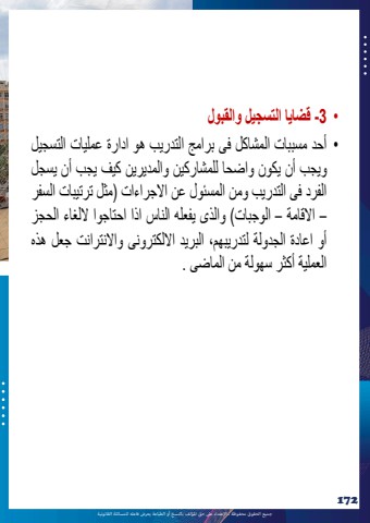 %u062c%u0645%u064a%u0639 %u0627%u0644%u062d%u0642%u0648%u0642 %u0645%u062d%u0641%u0648%u0638%u0629 %u0640 %u0627%u0625%u0644%u0639%u062a%u062f%u0627%u0621 %u0639%u0649%u0644 %u062d%u0642 %u0627%u0645%u0644%u0624%u0644%u0641 %u0628%u0627%u0644%u0646%u0633%u062e %u0623%u0648 %u0627%u0644%u0637%u0628%u0627%u0639%u0629 %u064a%u0639%u0631%u0636 %u0641%u0627%u0639%u0644%u0647 %u0644%u0644%u0645%u0633%u0627%u0626%u0644%u0629 %u0627%u0644%u0642%u0627%u0646%u0648%u0646%u064a%u0629172%u2022 3 -%u0642%u0636%u0627%u064a%u0627 %u0627%u0644%u062a%u0633%u062c%u064a%u0644 %u0648%u0627%u0644%u0642%u0628%u0648%u0644 %u2022 %u0623%u062d%u062f %u0645%u0633%u0628%u0628%u0627%u062a %u0627%u0644%u0645%u0634%u0627%u0643%u0644 %u0641%u0649 %u0628%u0631%u0627%u0645%u062c %u0627%u0644%u062a%u062f%u0631%u064a%u0628 %u0647%u0648 %u0627%u062f%u0627%u0631%u0629 %u0639%u0645%u0644%u064a%u0627%u062a %u0627%u0644%u062a%u0633%u062c%u064a%u0644%u0648%u064a%u062c%u0628 %u0623%u0646 %u064a%u0643%u0648%u0646 %u0648%u0627%u0636%u062d%u0627 %u0644%u0644%u0645%u0634%u0627%u0631%u0643%u064a%u0646 %u0648%u0627%u0644%u0645%u062f%u064a%u0631%u064a%u0646 %u0643%u064a%u0641 %u064a%u062c%u0628 %u0623%u0646 %u064a%u0633%u062c%u0644%u0627%u0644%u0641%u0631%u062f %u0641%u0649 %u0627%u0644%u062a%u062f%u0631%u064a%u0628 %u0648%u0645%u0646 %u0627%u0644%u0645%u0633%u0626%u0648%u0644 %u0639%u0646 %u0627%u0627%u0644%u062c%u0631%u0627%u0621%u0627%u062a )%u0645%u062b%u0644 %u062a%u0631%u062a%u064a%u0628%u0627%u062a %u0627%u0644%u0633%u0641%u0631%u2013 %u0627%u0627%u0644%u0642%u0627%u0645%u0629 %u2013 %u0627%u0644%u0648%u062c%u0628%u0627%u062a( %u0648%u0627%u0644%u0630%u0649 %u064a%u0641%u0639%u0644%u0647 %u0627%u0644%u0646%u0627%u0633 %u0627%u0630%u0627 %u0627%u062d%u062a%u0627%u062c%u0648%u0627 %u0627%u0644%u0644%u063a%u0627%u0621 %u0627%u0644%u062d%u062c%u0632%u0623%u0648 %u0627%u0639%u0627%u062f%u0629 %u0627%u0644%u062c%u062f%u0648%u0644%u0629 %u0644%u062a%u062f%u0631%u064a%u0628%u0647%u0645%u060c %u0627%u0644%u0628%u0631%u064a%u062f %u0627%u0627%u0644%u0644%u0643%u062a%u0631%u0648%u0646%u0649 %u0648%u0627%u0627%u0644%u0646%u062a%u0631%u0627%u0646%u062a %u062c%u0639%u0644 %u0647%u0630%u0647%u0627%u0644%u0639%u0645%u0644%u064a%u0629 %u0623%u0643%u062b%u0631 %u0633%u0647%u0648%u0644%u0629 %u0645%u0646 %u0627%u0644%u0645%u0627%u0636%u0649 .