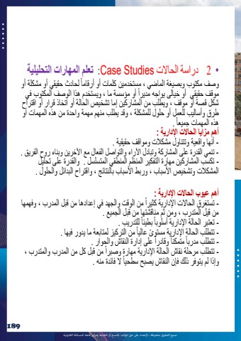 %u062c%u0645%u064a%u0639 %u0627%u0644%u062d%u0642%u0648%u0642 %u0645%u062d%u0641%u0648%u0638%u0629 %u0640 %u0627%u0625%u0644%u0639%u062a%u062f%u0627%u0621 %u0639%u0649%u0644 %u062d%u0642 %u0627%u0645%u0644%u0624%u0644%u0641 %u0628%u0627%u0644%u0646%u0633%u062e %u0623%u0648 %u0627%u0644%u0637%u0628%u0627%u0639%u0629 %u064a%u0639%u0631%u0636 %u0641%u0627%u0639%u0644%u0647 %u0644%u0644%u0645%u0633%u0627%u0626%u0644%u0629 %u0627%u0644%u0642%u0627%u0646%u0648%u0646%u064a%u0629189%u2022 2 %u062f%u0631%u0627%u0633%u0629 %u0627%u0644%u062d%u0627%u0627%u0644%u062a Studies Case :%u062a%u0639%u0644%u0645 %u0627%u0644%u0645%u0647%u0627%u0631%u0627%u062a %u0627%u0644%u062a%u062d%u0644%u064a%u0644%u064a%u0629%u064b %u0644%u062d%u0627%u062f%u062b %u062d%u0642%u064a%u0642%u064a %u0623%u0648 %u0645%u0634%u0643%u0644%u0629 %u0623%u0648%u0648%u0635%u0641 %u0645%u0643%u062a%u0648%u0628 %u0648%u0628%u0635%u064a%u063a%u0629 %u0627%u0644%u0645%u0627%u0636%u064a %u060c %u0645%u0633%u062a%u062e%u062f%u0645%u064a%u0646 %u0643%u0644%u0645%u0627%u062a %u0623%u0648 %u0623%u0631%u0642%u0627%u0645%u0627%u064b %u0623%u0648 %u0645%u0624%u0633%u0633%u0629 %u0645%u0627 %u060c %u0648%u064a%u0633%u062a%u062e%u062f%u0645 %u0647%u0630%u0627 %u0627%u0644%u0648%u0635%u0641 %u0627%u0644%u0645%u0643%u062a%u0648%u0628 %u0641%u064a%u0645%u0648%u0642%u0641 %u062d%u0642%u064a%u0642%u064a %u0623%u0648 %u062e%u064a%u0627%u0644%u0649 %u064a%u0648%u0627%u062c%u0647 %u0645%u062f%u064a%u0631%u0627%u0634%u0643%u0644 %u0642%u0635%u0629 %u0623%u0648 %u0645%u0648%u0642%u0641 %u060c %u0648%u064a%u0637%u0644%u0628 %u0645%u0646 %u0627%u0644%u0645%u0634%u0627%u0631%u0643%u064a%u0646 %u0625%u0645%u0627 %u062a%u0634%u062e%u064a%u0635 %u0627%u0644%u062d%u0627%u0644%u0629 %u0623%u0648 %u0627%u062a%u062e%u0627%u0630 %u0642%u0631%u0627%u0631 %u0623%u0648 %u0627%u0642%u062a%u0631%u0627%u062d %u0647%u0630%u0647 %u0627%u0644%u0645%u0647%u0645%u0627%u062a %u062c%u0645%u064a%u0639%u0627 . %u064b %u0637%u0631%u0642 %u0648%u0623%u0633%u0627%u0644%u064a%u0628 %u0644%u0644%u0639%u0645%u0644 %u0623%u0648 %u062d%u0644%u0648%u0644 %u0644%u0644%u0645%u0634%u0643%u0644%u0629 %u060c %u0648%u0642%u062f %u064a%u0637%u0644%u0628 %u0645%u0646%u0647%u0645 %u0645%u0647%u0645%u0629 %u0648%u0627%u062d%u062f%u0629 %u0645%u0646 %u0647%u0630%u0647 %u0627%u0644%u0645%u0647%u0645%u0627%u062a %u0623%u0648 %u0627%u0644%u0645%u0634%u0643%u0627%u0644%u062a %u0648%u062a%u0634%u062e%u064a%u0635 %u0627%u0623%u0644%u0633%u0628%u0627%u0628 %u060c %u0648%u0631%u0628%u0637 %u0627%u0623%u0644%u0633%u0628%u0627%u0628 %u0628%u0627%u0644%u0646%u062a%u0627%u0626%u062c %u060c %u0648%u0627%u0642%u062a%u0631%u0627%u062d %u0627%u0644%u0628%u062f%u0627%u0626%u0644 %u0648%u0627%u0644%u062d%u0644%u0648%u0644 . - %u062a%u0643%u0633%u0628 %u0627%u0644%u0645%u0634%u0627%u0631%u0643%u064a%u0646 %u0645%u0647%u0627%u0631%u0629 %u0627%u0644%u062a%u0641%u0643%u064a%u0631 %u0627%u0644%u0645%u0646%u0638%u0645 %u0627%u0644%u0645%u0646%u0637%u0642%u064a %u0627%u0644%u0645%u062a%u0633%u0644%u0633%u0644 . %u0648%u0627%u0644%u0642%u062f%u0631%u0629 %u0639%u0644%u0649 %u062a%u062d%u0644%u064a%u0644 - %u062a%u0646%u0645%u064a %u0627%u0644%u0642%u062f%u0631%u0629 %u0639%u0644%u0649 %u0627%u0644%u0645%u0634%u0627%u0631%u0643%u0629 %u0648%u062a%u0628%u0627%u062f%u0644 %u0627%u0622%u0644%u0631%u0627%u0621 %u0648%u0627%u0644%u062a%u0648%u0627%u0635%u0644 %u0627%u0644%u0641%u0639%u0627%u0644 %u0645%u0639 %u0627%u0622%u0644%u062e%u0631%u064a%u0646 %u0648%u0628%u0646%u0627%u0621 %u0631%u0648%u062d %u0627%u0644%u0641%u0631%u064a%u0642 . - %u0623%u0646%u0647%u0627 %u0648%u0627%u0642%u0639%u064a%u0629 %u0648%u062a%u062a%u0646%u0627%u0648%u0644 %u0645%u0634%u0643%u0627%u0644%u062a %u0648%u0645%u0648%u0627%u0642%u0641 %u062d%u0642%u064a%u0642%u064a%u0629 . %u0623%u0647%u0645 %u0645%u0632%u0627%u064a%u0627 %u0627%u0644%u062d%u0627%u0627%u0644%u062a %u0627%u0625%u0644%u062f%u0627%u0631%u064a%u0629 :%u0623%u0647%u0645 %u0639%u064a%u0648%u0628 %u0627%u0644%u062d%u0627%u0627%u0644%u062a %u0627%u0625%u0644%u062f%u0627%u0631%u064a%u0629 :%u0645%u0646 %u0627%u0644%u0648%u0642%u062a %u0648%u0627%u0644%u062c%u0647%u062f %u0641%u064a %u0625%u0639%u062f%u0627%u062f%u0647%u0627 %u0645%u0646 %u0642%u0628%u0644 %u0627%u0644%u0645%u062f%u0631%u0628 %u060c %u0648%u0641%u0647%u0645%u0647%u0627%u064b%u064b %u0644%u0644%u062a%u062f%u0631%u064a%u0628 . %u0645%u0646 %u0642%u064a%u0644 %u0627%u0644%u0645%u062a%u062f%u0631%u0628 %u060c %u0648%u0645%u0646 %u062b%u0645 %u0645%u0646%u0627%u0642%u0634%u062a%u0647%u0627 %u0645%u0646 %u0642%u0628%u0644 %u0627%u0644%u062c%u0645%u064a%u0639 . - %u062a%u0633%u062a%u063a%u0631%u0642 %u0627%u0644%u062d%u0627%u0627%u0644%u062a %u0627%u0625%u0644%u062f%u0627%u0631%u064a%u0629 %u0643%u062b%u064a%u0631%u0627%u0628%u0637%u064a%u0626%u0627%u064b%u0645%u0646 %u0627%u0644%u062a%u0631%u0643%u064a%u0632 %u0644%u0645%u062a%u0627%u0628%u0639%u0629 %u0645%u0627 %u064a%u062f%u0648%u0631 %u0641%u064a%u0647%u0627 - %u062a%u0639%u062a%u0628%u0631 %u0627%u0644%u062d%u0627%u0644%u0629 %u0627%u0625%u0644%u062f%u0627%u0631%u064a%u0629 %u0623%u0633%u0644%u0648%u0628%u0627%u064b%u064b%u0649 . - %u0639%u0627%u0644%u064a%u0627%u0639%u0644%u0649 %u0625%u062f%u0627%u0631%u0629 %u0627%u0644%u0646%u0642%u0627%u0634 %u0648%u0627%u0644%u062d%u0648%u0627%u0631 . %u062a%u062a%u0637%u0644%u0628 %u0627%u0644%u062d%u0627%u0644%u0629 %u0627%u0625%u0644%u062f%u0627%u0631%u064a%u0629 %u0645%u0633%u062a%u0648%u064b%u0648%u0642%u0627%u062f%u0631%u0627%u064b%u0645%u062a%u0645%u0643%u0646%u0627%u064b%u0645%u0646 %u0642%u0628%u0644 %u0643%u0644 %u0645%u0646 %u0627%u0644%u0645%u062f%u0631%u0628 %u0648%u0627%u0644%u0645%u062a%u062f%u0631%u0628 %u060c - %u062a%u062a%u0637%u0644%u0628 %u0645%u062f%u0631%u0628%u0627%u064b%u0627%u0644 %u0641%u0627%u0626%u062f%u0629 %u0645%u0646%u0647 - %u062a%u062a%u0637%u0644%u0628 %u0645%u0631%u062d%u0644%u0629 %u0646%u0642%u0627%u0634 %u0627%u0644%u062d%u0627%u0644%u0629 %u0627%u0625%u0644%u062f%u0627%u0631%u064a%u0629 %u0645%u06