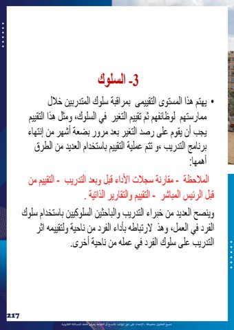 %u062c%u0645%u064a%u0639 %u0627%u0644%u062d%u0642%u0648%u0642 %u0645%u062d%u0641%u0648%u0638%u0629 %u0640 %u0627%u0625%u0644%u0639%u062a%u062f%u0627%u0621 %u0639%u0649%u0644 %u062d%u0642 %u0627%u0645%u0644%u0624%u0644%u0641 %u0628%u0627%u0644%u0646%u0633%u062e %u0623%u0648 %u0627%u0644%u0637%u0628%u0627%u0639%u0629 %u064a%u0639%u0631%u0636 %u0641%u0627%u0639%u0644%u0647 %u0644%u0644%u0645%u0633%u0627%u0626%u0644%u0629 %u0627%u0644%u0642%u0627%u0646%u0648%u0646%u064a%u06292173 -%u0627%u0644%u0633%u0644%u0648%u0643 %u2022 %u064a%u0647%u062a%u0645 %u0647%u0630%u0627 %u0627%u0644%u0645%u0633%u062a%u0648%u0649 %u0627%u0644%u062a%u0642%u064a%u064a%u0645%u0649 %u0628%u0645%u0631%u0627%u0642%u0628%u0629 %u0633%u0644%u0648%u0643 %u0627%u0644%u0645%u062a%u062f%u0631%u0628%u064a%u0646 %u062e%u0644%u0627%u0644 %u0645%u0645%u0627%u0631%u0633%u062a%u0647%u0645 %u0644%u0648%u0638%u0627%u0626%u0641%u0647%u0645 %u062b%u0645 %u062a%u0642%u064a%u064a%u0645 %u0627%u0644%u062a%u063a%u064a%u0631 %u0641%u064a %u0627%u0644%u0633%u0644%u0648%u0643%u060c %u0648%u0645%u062b%u0644 %u0647%u0630%u0627 %u0627%u0644%u062a%u0642%u064a%u064a%u0645 %u064a%u062c%u0628 %u0623%u0646 %u064a%u0642%u0648%u0645 %u0639%u0644%u0649 %u0631%u0635%u062f %u0627%u0644%u062a%u063a%u064a%u0631 %u0628%u0639%u062f %u0645%u0631%u0648%u0631 %u0628%u0636%u0639%u0629 %u0623%u0634%u0647%u0631 %u0645%u0646 %u0625%u0646%u062a%u0647%u0627%u0621 %u0628%u0631%u0646%u0627%u0645%u062c %u0627%u0644%u062a%u062f%u0631%u064a%u0628 %u060c%u0648 %u062a%u062a%u0645 %u0639%u0645%u0644%u064a%u0629 %u0627%u0644%u062a%u0642%u064a%u064a%u0645 %u0628%u0627%u0633%u062a%u062e%u062f%u0627%u0645 %u0627%u0644%u0639%u062f%u064a%u062f %u0645%u0646 %u0627%u0644%u0637%u0631%u0642 %u0623%u0647%u0645%u0647%u0627: %u0627%u0644%u0645%u0644%u0627%u062d%u0638%u0629 - %u0645%u0642%u0627%u0631%u0646%u0629 %u0633%u062c%u0644%u0627%u062a %u0627%u0644%u0623%u062f%u0627%u0621 %u0642%u0628%u0644 %u0648%u0628%u0639%u062f %u0627%u0644%u062a%u062f%u0631%u064a%u0628 - %u0627%u0644%u062a%u0642%u064a%u064a%u0645 %u0645%u0646 %u0642%u0628%u0644 %u0627%u0644%u0631%u0626%u064a%u0633 %u0627%u0644%u0645%u0628%u0627%u0634%u0631 - %u0627%u0644%u062a%u0642%u064a%u064a%u0645 %u0648%u0627%u0644%u062a%u0642%u0627%u0631%u064a%u0631 %u0627%u0644%u0630%u0627%u062a%u064a%u0629 .%u0648%u064a%u0646%u0635%u062d %u0627%u0644%u0639%u062f%u064a%u062f %u0645%u0646 %u062e%u0628%u0631%u0627%u0621 %u0627%u0644%u062a%u062f%u0631%u064a%u0628 %u0648%u0627%u0644%u0628%u0627%u062d%u062b%u064a%u0646 %u0627%u0644%u0633%u0644%u0648%u0643%u064a%u064a%u0646 %u0628%u0627%u0633%u062a%u062e%u062f%u0627%u0645 %u0633%u0644%u0648%u0643 %u0627%u0644%u0641%u0631%u062f %u0641%u064a %u0627%u0644%u0639%u0645%u0644%u060c %u0648%u0647%u0630 %u0644%u0627%u0631%u062a%u0628%u0627%u0637%u0647 %u0628%u0623%u062f%u0627%u0621 %u0627%u0644%u0641%u0631%u062f %u0645%u0646 %u0646%u0627%u062d%u064a%u0629 %u0648%u0644%u062a%u0642%u064a%u064a%u0645%u0647 %u0627%u062b%u0631 %u0627%u0644%u062a%u062f%u0631%u064a%u0628 %u0639%u0644%u0649 %u0633%u0644%u0648%u0643 %u0627%u0644%u0641%u0631%u062f %u0641%u064a %u0639%u0645%u0644%u0647 %u0645%u0646 %u0646%u0627%u062d%u064a%u0629 %u0623%u062e%u0631%u0649.