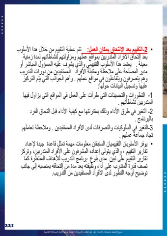 %u062c%u0645%u064a%u0639 %u0627%u0644%u062d%u0642%u0648%u0642 %u0645%u062d%u0641%u0648%u0638%u0629 %u0640 %u0627%u0625%u0644%u0639%u062a%u062f%u0627%u0621 %u0639%u0649%u0644 %u062d%u0642 %u0627%u0645%u0644%u0624%u0644%u0641 %u0628%u0627%u0644%u0646%u0633%u062e %u0623%u0648 %u0627%u0644%u0637%u0628%u0627%u0639%u0629 %u064a%u0639%u0631%u0636 %u0641%u0627%u0639%u0644%u0647 %u0644%u0644%u0645%u0633%u0627%u0626%u0644%u0629 %u0627%u0644%u0642%u0627%u0646%u0648%u0646%u064a%u0629221%u2022 2-%u0627%u0644%u062a%u0642%u064a%u064a%u0645 %u0628%u0639%u062f %u0627%u0644%u0625%u0644%u062a%u062d%u0627%u0642 %u0628%u0645%u0643%u0627%u0646 %u0627%u0644%u0639%u0645%u0644: %u062a%u062a%u0645 %u0639%u0645%u0644%u064a%u0629 %u0627%u0644%u062a%u0642%u064a%u064a%u0645 %u0645%u0646 %u062e%u0644%u0627%u0644 %u0647%u0630%u0627 %u0627%u0644%u0623%u0633%u0644%u0648%u0628 %u0628%u0639%u062f %u0625%u0644%u062a%u062d%u0627%u0642 %u0627%u0644%u0623%u0641%u0631%u0627%u062f %u0627%u0644%u0645%u062a%u062f%u0631%u0628%u064a%u0646 %u0628%u0645%u0648%u0627%u0642%u0639 %u0639%u0645%u0644%u0647%u0645 %u0648%u0645%u0632%u0627%u0648%u0644%u062a%u0647%u0645 %u0644%u0646%u0634%u0627%u0637%u0627%u062a%u0647%u0645 %u0644%u0645%u062f%u0629 %u0632%u0645%u0646%u064a%u0629 %u0645%u062f%u064a%u0631 %u0627%u0644%u0645%u0635%u0644%u062d%u0629 %u0639%u0644%u0649 %u0645%u0644%u0627%u062d%u0638%u0629 %u0648%u0645%u0642%u0627%u0628%u0644%u0629 %u0627%u0644%u0623%u0641%u0631%u0627%u062f %u0627%u0644%u0645%u0633%u062a%u0641%u064a%u062f%u064a%u0646 %u0645%u0646 %u062f%u0648%u0631%u0627%u062a %u0627%u0644%u062a%u062f%u0631%u064a%u0628 %u0645%u0639%u064a%u0646%u0629 . %u064a%u0639%u062a%u0645%u062f %u0647%u0630%u0627 %u0627%u0644%u0623%u0633%u0644%u0648%u0628 %u0627%u0644%u062a%u0642%u064a%u064a%u0645%u064a %u0648%u0627%u0644%u0630%u064a %u064a%u0634%u0631%u0641 %u0639%u0644%u064a%u0647 %u0627%u0644%u0645%u0633%u0624%u0648%u0644 %u0627%u0644%u0645%u0628%u0627%u0634%u0631 %u0623%u0648 %u0648%u0647%u0645 %u064a%u062a%u0635%u0631%u0641%u0648%u0646 %u0648%u064a%u062a%u0641%u0627%u0639%u0644%u0648%u0646 %u0641%u064a %u0645%u0648%u0627%u0642%u0639 %u0639%u0645%u0644%u0647%u0645 . %u0648%u0623%u0647%u0645 %u0627%u0644%u062c%u0648%u0627%u0646%u0628 %u0627%u0644%u062a%u064a %u064a%u062a%u0645 %u0627%u0644%u062a%u0631%u0643%u064a%u0632 %u0639%u0644%u064a%u0647%u0627 %u0648%u062a%u0633%u062c%u064a%u0644 %u0627%u0644%u0628%u064a%u0627%u0646%u0627%u062a %u062d%u0648%u0644%u0647%u0627: %u0627%u0644%u0645%u062a%u062f%u0631%u0628%u064a%u0646 %u0646%u0634%u0627%u0637%u0627%u062a%u0647%u0645 . 1 -%u0627%u0644%u062a%u0637%u0648%u0631%u0627%u062a %u0648%u0627%u0644%u062a%u062d%u0633%u064a%u0646%u0627%u062a %u0627%u0644%u062a%u064a %u0637%u0631%u0623%u062a %u0639%u0644%u0649 %u0627%u0644%u0639%u0645%u0644 %u0641%u064a %u0627%u0644%u0645%u0648%u0627%u0642%u0639 %u0627%u0644%u062a%u064a %u064a%u0632%u0627%u0648%u0644 %u0641%u064a%u0647%u0627 %u0628%u0627%u0644%u0628%u0631%u0646%u0627%u0645%u062c . 2 -%u0627%u0644%u062a%u063a%u064a%u0631 %u0641%u064a %u0637%u0631%u0642 %u0627%u0644%u0623%u062f%u0627%u0621 %u0648%u0630%u0644%u0643 %u0628%u0645%u0642%u0627%u0631%u0646%u062a%u0647%u0627 %u0645%u0639 %u0643%u064a%u0641%u064a%u0629 %u0627%u0644%u0623%u062f%u0627%u0621 %u0642%u0628%u0644 %u0627%u0644%u062a%u062d%u0627%u0642 %u0627%u0644%u0641%u0631%u062f %u062a%u062c%u0627%u0647 %u062c%u0645%u0627%u0639%u0629 %u0639%u0645%u0644%u0647%u0645 . 3-%u0627%u0644%u062a%u063a%u064a%u0631 %u0641%u064a %u0627%u0644%u0633%u0644%u0648%u0643%u064a%u0627%u062a %u0648%u0627%u0644%u062a%u0635%u0631%u0641%u0627%u062a %u0644%u062f%u0649 %u0627%u0644%u0623%u0641%u0631%u0627%u062f %u0627%u0644%u0645%u0633%u062a%u0641%u064a%u062f%u064a%u0646 . %u0648%u0645%u0644%u0627%u062d%u0638%u0629 %u062a%u0639%u0627%u0645%u0644%u0647%u0645 %u2022 %u064a%u0648%u0641%u0631 %u0627%u0644%u0623%u0633%u0644%u0648%u0628%u0627%u0646 %u0627%u0644%u062a%u0642%u064a%u064a%u0645%u064a%u0627%u0646 %u0627%u0644%u0633%u0627%u0628%u0642%u0627%u0646 %u0645%u0639%u0644%u0648%u0645%u0627%u062a %u0645%u0647%u0645%u0629 %u062a%u0645%u062b%u0644 %u0642%u0627%u0639%u062f%u0629 %u062c%u064a%u062f%u0629 %u0644%u0625%u0639%u062f%u0627%u062f %u062a%u0642%u0627%u0631%u064a%u0631 %u0627%u0644%u062a%u0642%u064a%u064a%u0645 %u0639%u0644%u0649 %u062a%u0628%u064a%u0646 %u0645%u062f%u0649 %u0628%u0644%u0648%u063a %u0628%u0631%u0646%u0627%u0645%u062c %u0627%u0644%u062a%u062f%u0631%u064a%u0628 %u0644%u0644%u0623%u0647%u062f%u0627%u0641 %u0627%u0644%u0645%u0646%u062a%u0638%u0631%u0629 %u0643%u0645%u0627 %u062a%u0642%u0627%u0631%u064a%u0631 %u0627%u0644%u062a%u0642%u064a%u064a%u0645 %u060c %u0648%u0627%u0644%u0630%u064a %u064a%u062a%u0648%u0644%u0649 %u0625%u0639%u062f%u0627%u062f%u0647 %u0627%u0644%u0645%u0634%u0631%u0641%u0648%u0646 %u0639%u0644%u0649 %u0627%u0644%u0623%u0641%u0631%u0627%u062f %u0627%u0644%u0645%u062a%u062f%u0631%u0628%u064a%u0646%u060c %u0648%u062a%u0631%u0643%u0632 %u062a%u0648%u0636%u064a%u062d %u0623%u0648%u062c%u0647 %u0627%u0644%u062a%u0637%u0648%u0631 %u0644%u062f%u0649 %u0627%u0644%u0623%u0641%u0631%u0627%u062f %u0627%u0644%u0645%u0633%u062a%u0641%u064a%u062f%u064a%u0646 %u0645%u0646 %u0627%u0644%u062a%u062f%u0631%u064a%u0628. %u062a%u0635%u0641 %u0642%u062f%u0631%u0629 %u0627%u0644%u0645%u062a%u062f%u0631%u0628 %u0639%u0644%u0649 %u0623%u062f%u0627%u0621 %u0648%u0638%u064a%u0641%u062a%u0647 %u0628%u0639%u062f %u0645%u062f%u0629 %u0645%u0646 %u0625%u0644%u062a%u062d%u0627%u0642%u0647 %u0628%u0645%u0646%u0635%u0628%u0647 %u0625%u0644%u0649 %u062c%u0627%u0646%u0628
