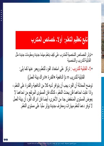 %u062c%u0645%u064a%u0639 %u0627%u0644%u062d%u0642%u0648%u0642 %u0645%u062d%u0641%u0648%u0638%u0629 %u0640 %u0627%u0625%u0644%u0639%u062a%u062f%u0627%u0621 %u0639%u0649%u0644 %u062d%u0642 %u0627%u0645%u0644%u0624%u0644%u0641 %u0628%u0627%u0644%u0646%u0633%u062e %u0623%u0648 %u0627%u0644%u0637%u0628%u0627%u0639%u0629 %u064a%u0639%u0631%u0636 %u0641%u0627%u0639%u0644%u0647 %u0644%u0644%u0645%u0633%u0627%u0626%u0644%u0629 %u0627%u0644%u0642%u0627%u0646%u0648%u0646%u064a%u062999%u062a%u0627%u0628%u0639 %u062a%u0639%u0638%u064a%u0645 %u0627%u0644%u062a%u0639%u0644%u0645: %u0623%u0648%u0627%u0644- %u062e%u0635%u0627%u0626%u0635 %u0627%u0644%u0645%u062a%u062f%u0631%u0628 %u2022 %u062a%u0624%u062b%u0631 %u0627%u0644%u062e%u0635%u0627%u0626%u0635 %u0627%u0644%u0634%u062e%u0635%u064a%u0629 %u0644%u0644%u0645%u062a%u062f%u0631%u0628 %u0639%u0644%u0649 %u0643%u064a%u0641 %u064a%u062a%u0639%u0644%u0645 %u0645%u0647%u0627%u0645%u0627 %u062c%u062f%u064a%u062f%u0629 %u0648%u0645%u0639%u0644%u0648%u0645%u0627%u062a %u062c%u062f%u064a%u062f%u0629 %u0645%u062b%u0644 %u0627%u0644%u0642%u0627%u0628%u0644%u064a%u0629 %u0644%u0644%u062a%u062f%u0631%u064a%u0628 %u0648%u0627%u0644%u0634%u062e%u0635%u064a%u0629 %u2022 1 -%u0627%u0644%u0642%u0627%u0628%u0644%u064a%u0629 %u0644%u0644%u062a%u062f%u0631%u064a%u0628 : %u062a%u0631%u0643%u0632 %u0639%u0644%u0649 %u0627%u0633%u062a%u0639%u062f%u0627%u062f %u0627%u0644%u0641%u0631%u062f %u0644%u0644%u062a%u0639%u0644%u0645 %u0648%u064a%u0639%u0628%u0631 %u0639%u0646%u0647%u0627 %u0643%u0645%u0627 %u064a%u0644%u0649: %u0627%u0644%u0642%u0627%u0628%u0644%u064a%u0629 %u0644%u0644%u062a%u062f%u0631%u064a%u0628 = %u062f) %u0627%u0644%u062f%u0627%u0641%u0639%u064a%u0629 %u00d7%u0627%u0644%u0642%u062f%u0631%u0629 %u00d7%u0627%u062f%u0631%u0627%u0643 %u0628%u064a%u0626%u0629 %u0627%u0644%u0639%u0645%u0644(%u062a%u0648%u0636%u062d %u0627%u0644%u0645%u0639%u0627%u062f%u0644%u0629 %u0623%u0646 %u0627%u0644%u0641%u0631%u062f %u064a%u062c%u0628 %u0623%u0646 %u064a%u062a%u0648%u0627%u0641%u0631 %u0644%u062f%u064a%u0647 %u0643%u0627%u0644 %u0645%u0646 %u0627%u0644%u062f%u0627%u0641%u0639%u064a%u0629 %u0648%u0627%u0644%u0642%u062f%u0631%u0629 %u0639%u0644%u0649 %u0627%u0644%u062a%u0639%u0644%u0645 %u060c %u0648%u0627%u0630%u0627 %u063a%u0627%u0628%u062a %u0627%u062d%u062f%u0627%u0647%u0645%u0627 %u0641%u0644%u0646 %u064a%u062d%u062f%u062b %u0627%u0644%u062a%u0639%u0644%u0645 %u060c %u0643%u0630%u0644%u0643 %u0641%u0627%u0646 %u0627%u0644%u0645%u0633%u062a%u0648%u0649 %u0627%u0644%u0645%u0631%u062a%u0641%u0639 %u0645%u0646 %u0627%u062d%u062f%u0627%u0647%u0645%u0627 %u0627%u0644 %u064a%u0639%u0648%u0636 %u0627%u0644%u0645%u0633%u062a%u0648%u0649 %u0627%u0644%u0645%u0646%u062e%u0641%u0636 %u062c%u062f%u0627 %u0645%u0646 %u0627%u0623%u0644%u062e%u0631%u0649%u060c %u0623%u064a%u0636%u0627 %u0641%u0627%u0646 %u0627%u062f%u0631%u0627%u0643 %u0627%u0644%u0641%u0631%u062f %u0623%u0646 %u0628%u064a%u0626%u0629 %u0627%u0644%u0639%u0645%u0644 %u0627%u0644 %u062a%u0648%u0641%u0631 %u062f%u0639%u0645%u0627 %u0644%u062a%u0639%u0644%u0645 %u0645%u0647%u0627%u0631%u0627%u062a %u0648%u0645%u0639%u0627%u0631%u0641 %u062c%u062f%u064a%u062f%u0629 %u064a%u0624%u062b%u0631 %u0633%u0644%u0628%u0627 %u0639%u0644%u0649 %u0645%u0633%u062a%u0648%u0649 %u0627%u0644%u062a%u0639%u0644%u0645.